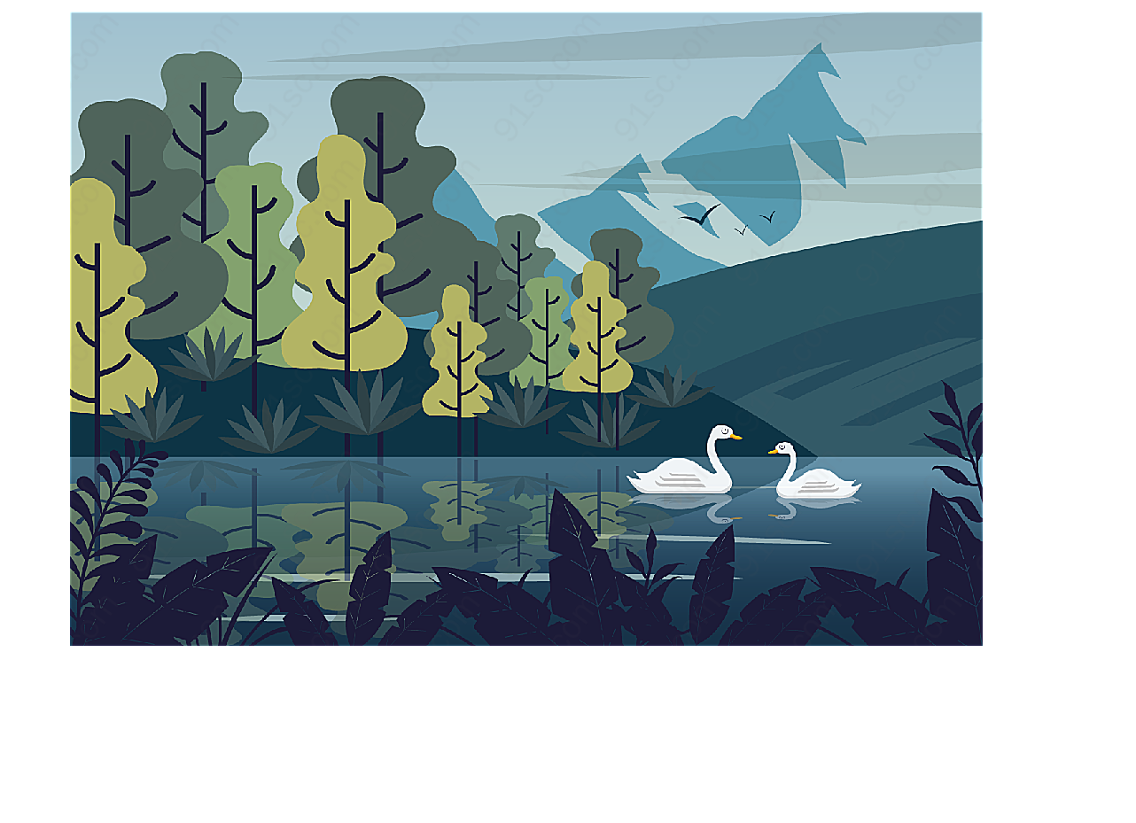 下载《雪山湖泊天鹅风景矢量自然风景》