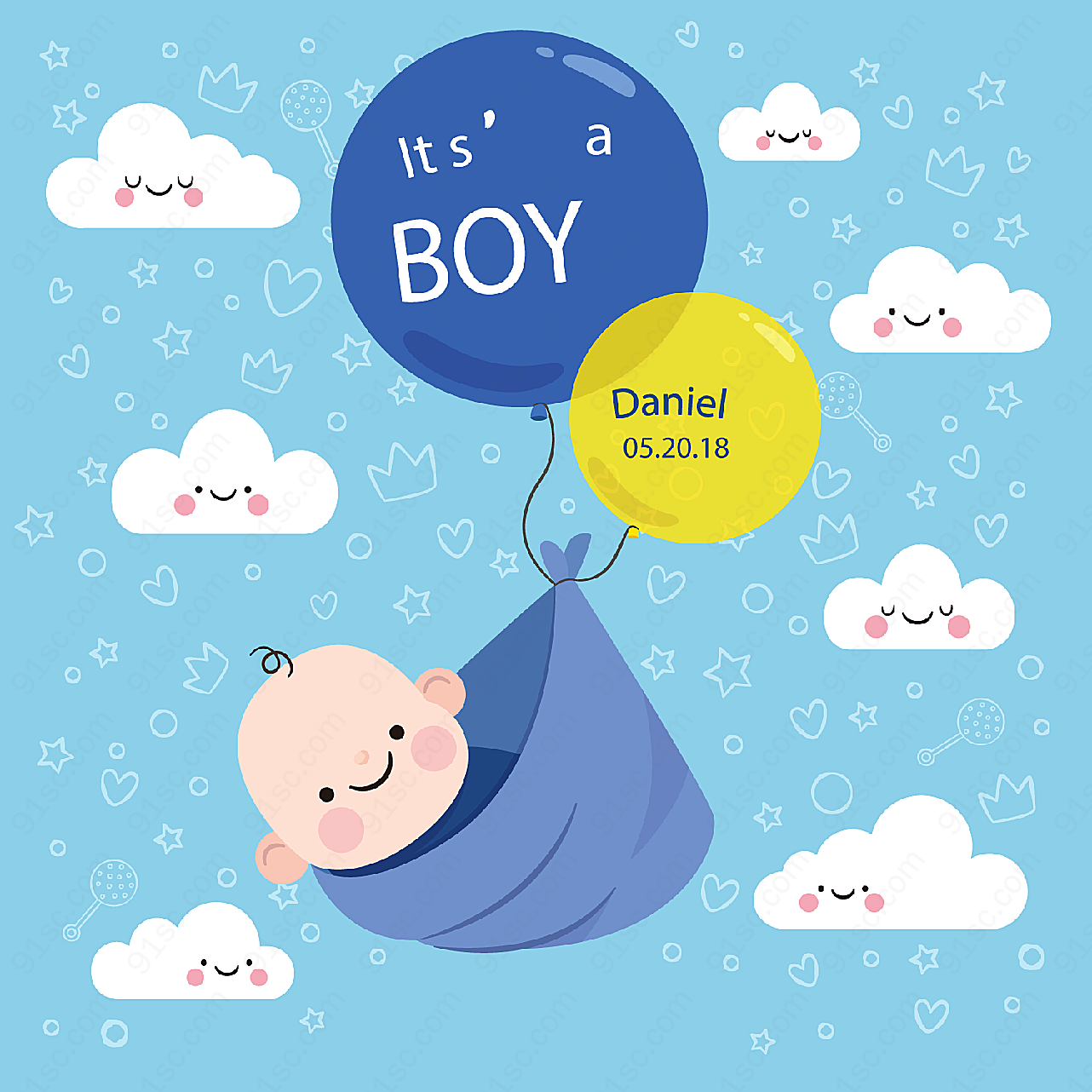 下载《气球和男婴邀请卡其它矢量节日其它》