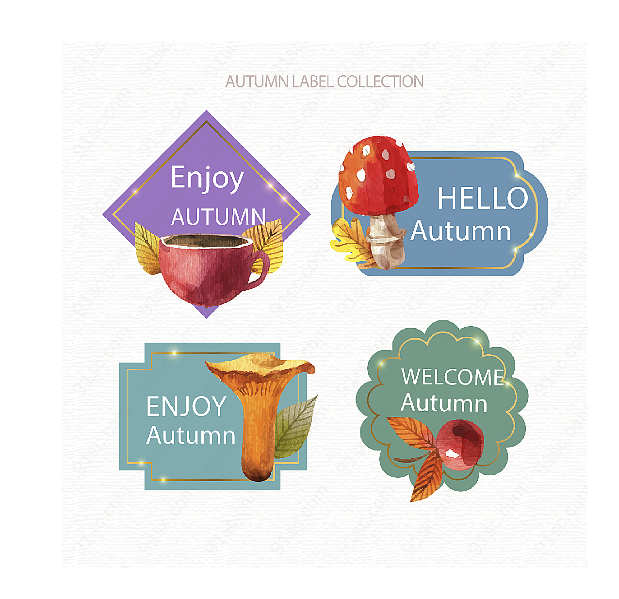 下载《彩绘秋季元素标签label矢量》
