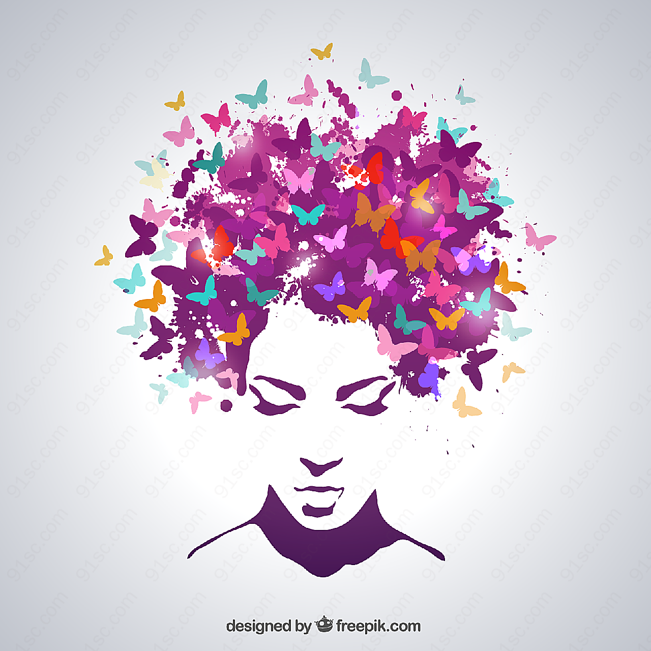 下载《蝴蝶花纹女子头像矢量女性人物》