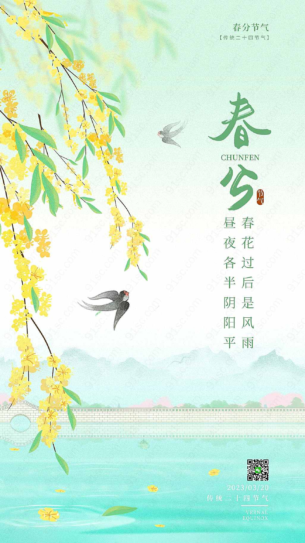 下载《春分时刻渐变色彩水彩水墨手机宣传节气海报新媒体用图下载》