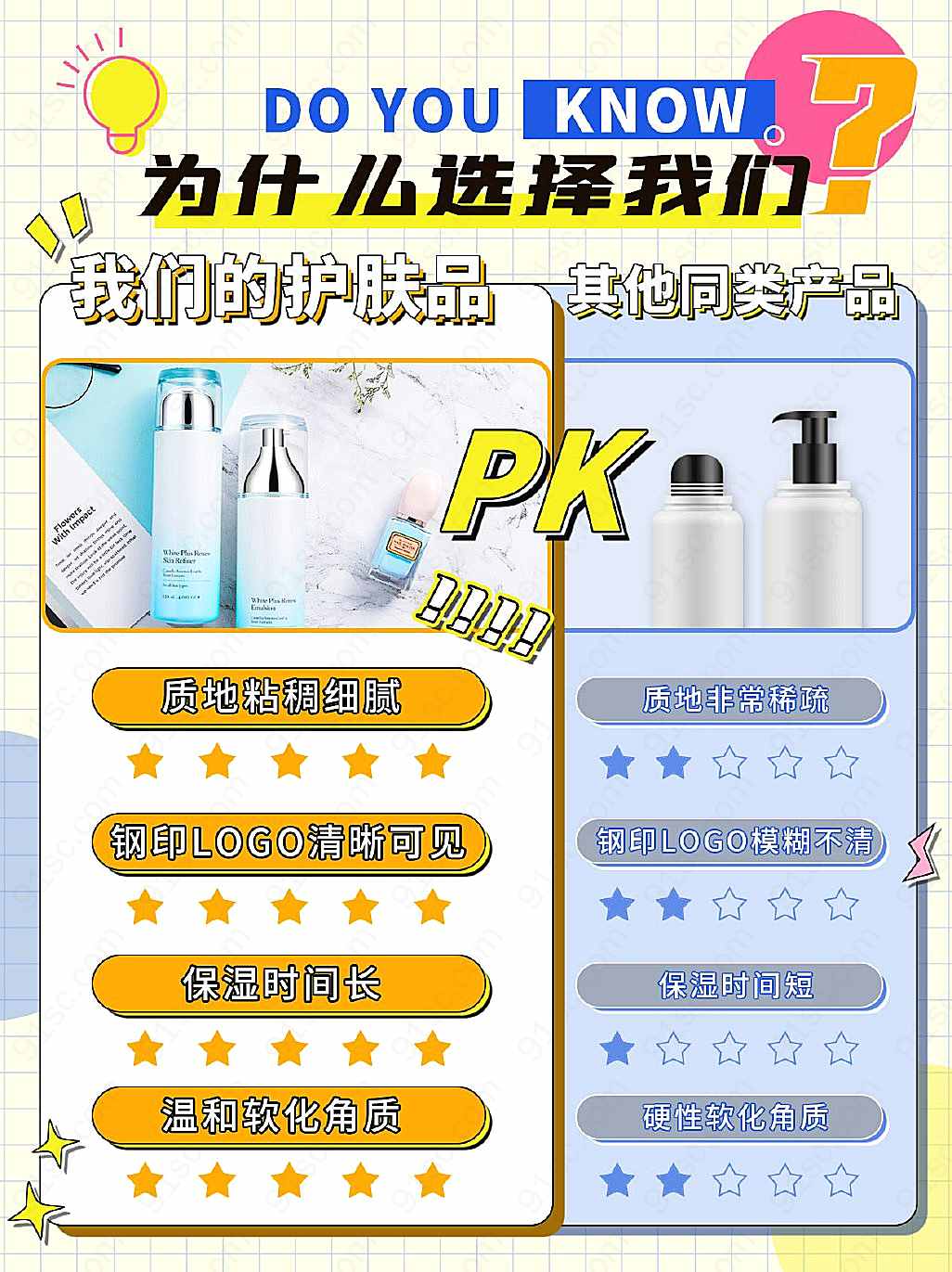 下载《孟菲斯卡通可爱美妆产品小红书对比评测社交媒体用图新媒体用图下载》