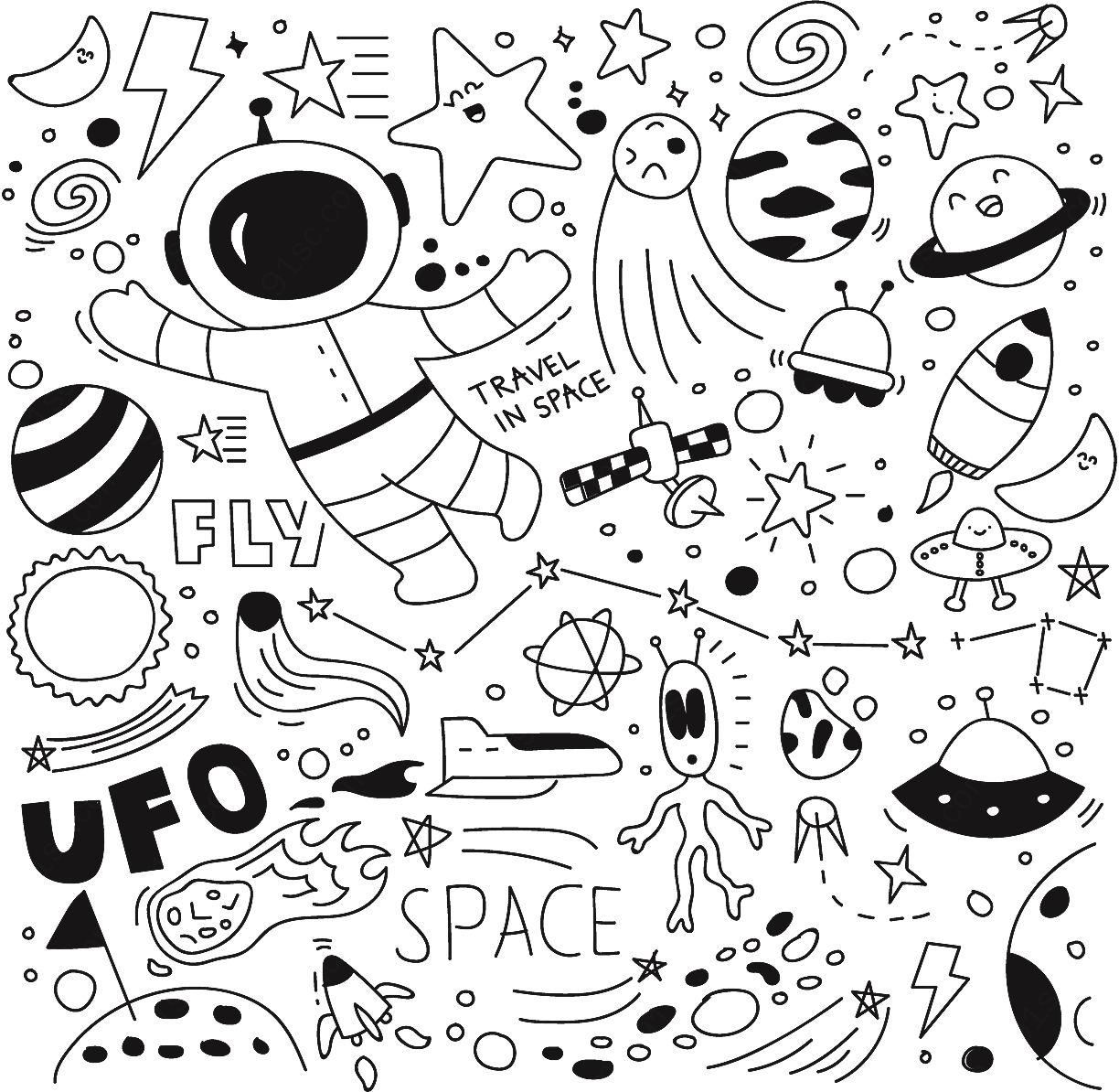 下载《太空涂鸦集矢量图案》